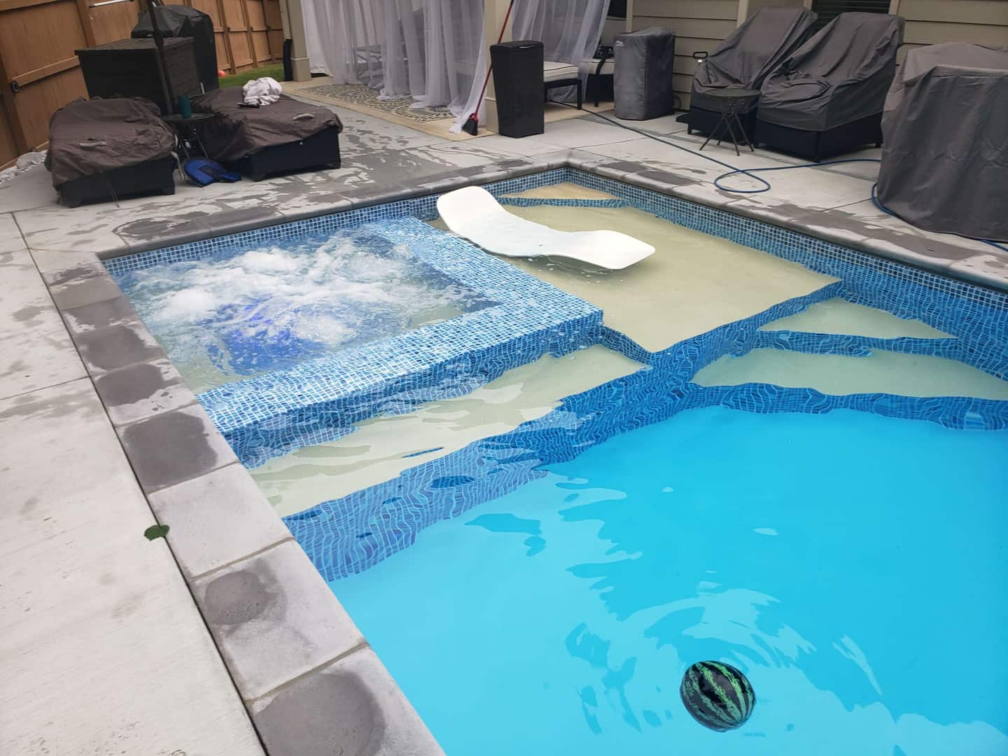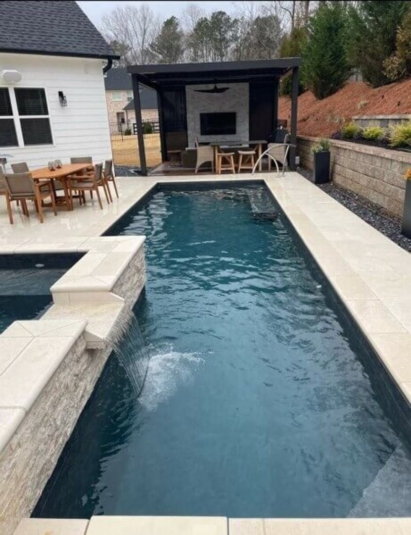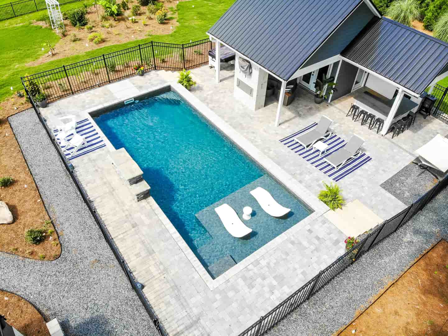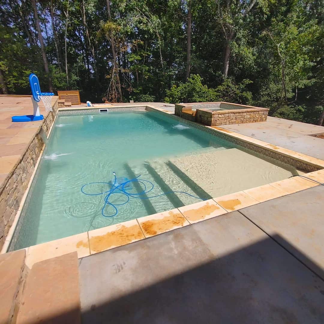 Desjoyaux Pools patented the active casing wall structure. The forms for the walls are made with recycled plastic and can be configured to make any size or shape pool. The casings are filled with concrete and poured with the floor creating a monolithic